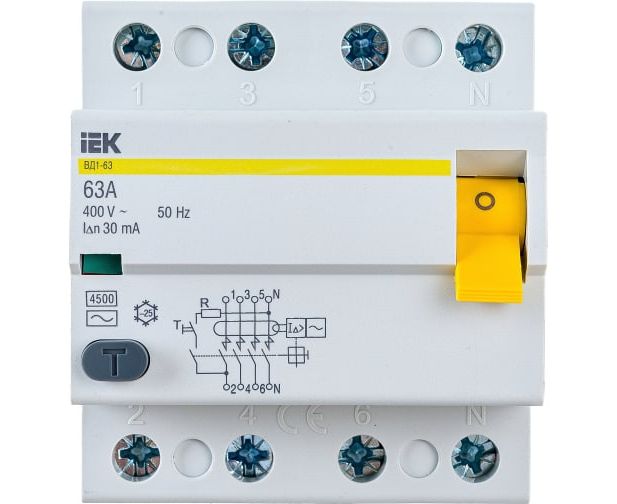 Преимущества IEK ВД1-63 4п, AC, 63А, 30мА MDV10-4-063-030
