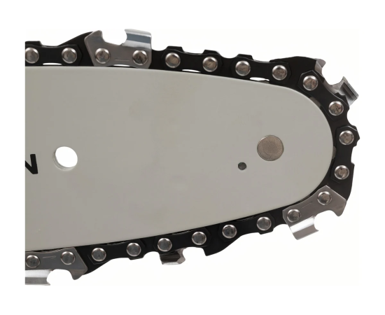 Оснащенный цепным механизмом и щеточным двигателем, он позволяет выполнять резку на высоте до 0.190 м. Благодаря шагу цепи 3/8 (0.375) и 33 звеньям, инструмент обеспечивает точность и аккуратность в работе. Максимальная скорость вращения цепи составляет 2600 об/мин, что способствует быстрому выполнению задач.