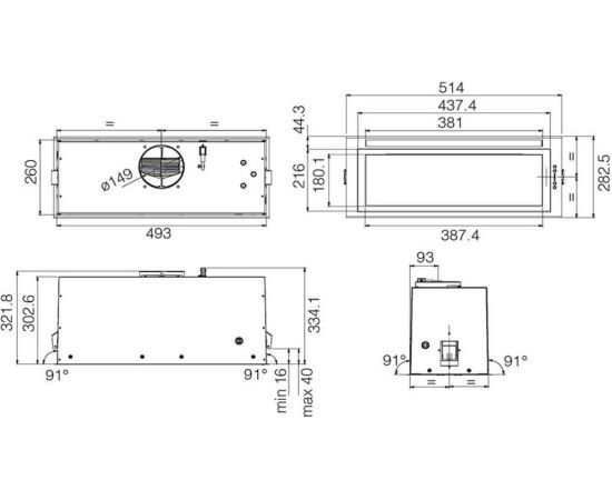 Диаметр воздуховода, мм 150