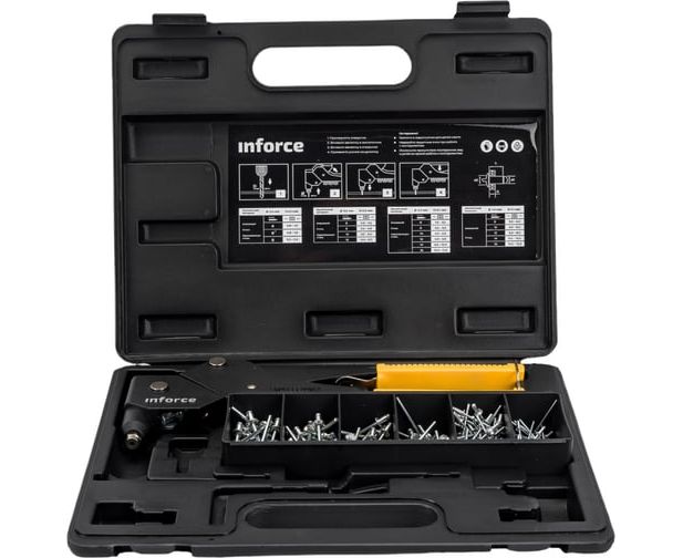 Долгий срок службы Inforce поворотный 360 град., в кейсе, с набором заклепок 2.4-4.8 мм 06-14-111
