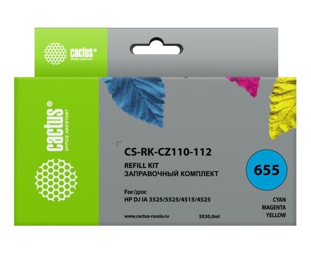 Заправочный набор Cactus CS-RK-CZ110-112 многоцветный 3x90мл для HP DJ IA 3525/5525/4515/4525