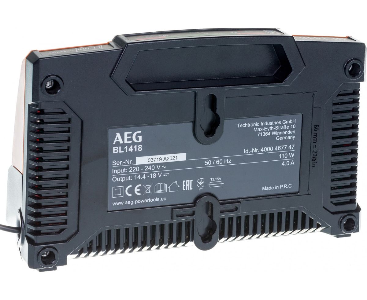 Зарядное устройство BL1418 AEG 4932464542 предназначено для зарядки Li-Ion аккумуляторов напряжением от 14.4 до 18 В. Оснащено световыми индикаторами степени зарядки. Данное устройство заряжает аккумулятор емкостью 3.0 А*ч всего за один час.
