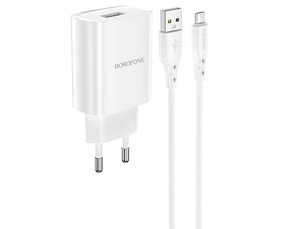 Сетевое зарядное устройство BOROFONE BN1 Innovative 1xUSB с Кабелем USB - Micro, 2.1A, белый