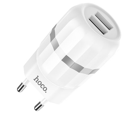 Сетевое зарядное устройство HOCO C41A Wisdom 2xUSB с Кабелем USB - Micro, 2.4A, 10.8W, белый