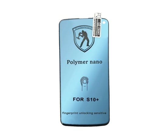 Защитная пленка Polymer nano для Samsung S10+, Full Glue 3D, чувствителен к отпечатку, прозрачный+черная рамка