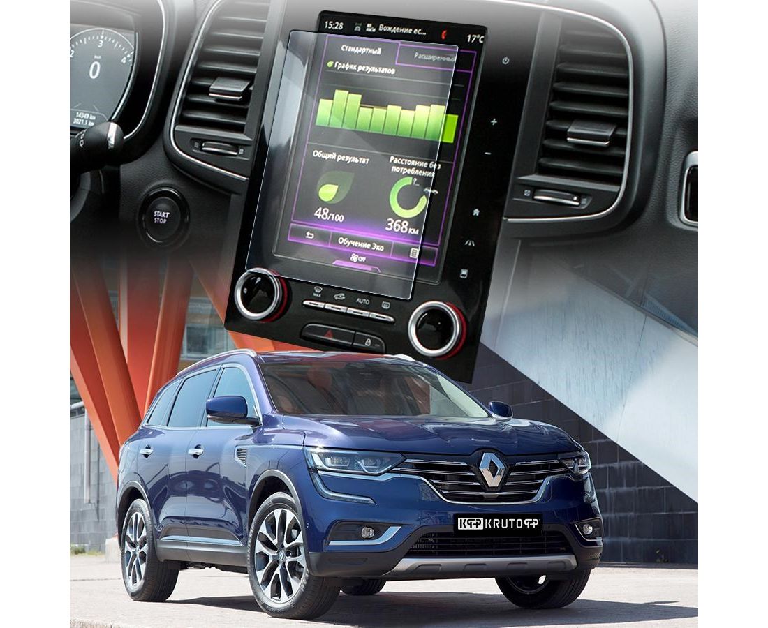 Защитное гибридное стекло Krutoff для экрана мультимедии Renault Koleos 2 2016 - 2019