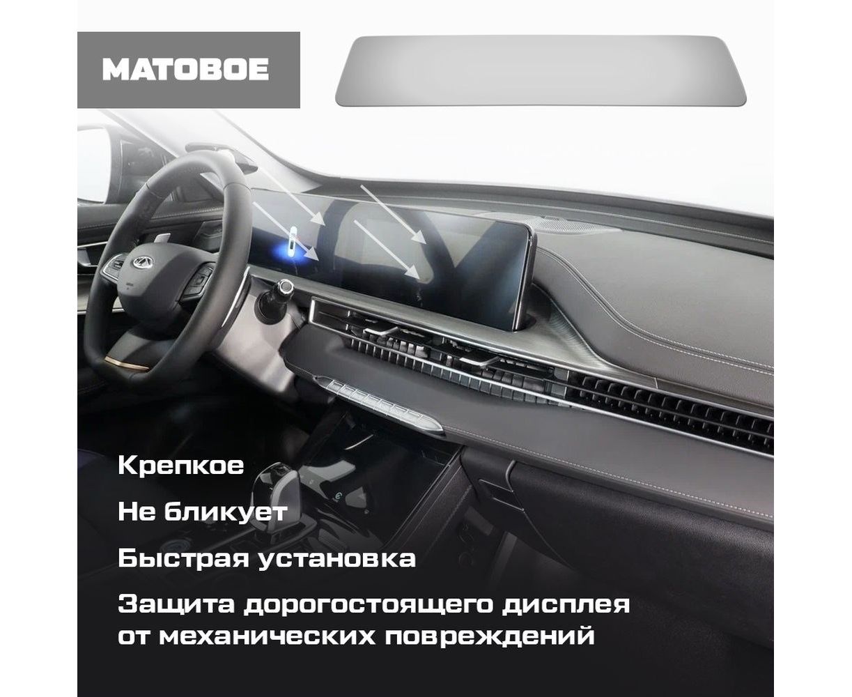 Защитное гибридное стекло МАТОВОЕ Krutoff для экрана мультимедии Chery Tiggo 8 Pro Max 2023