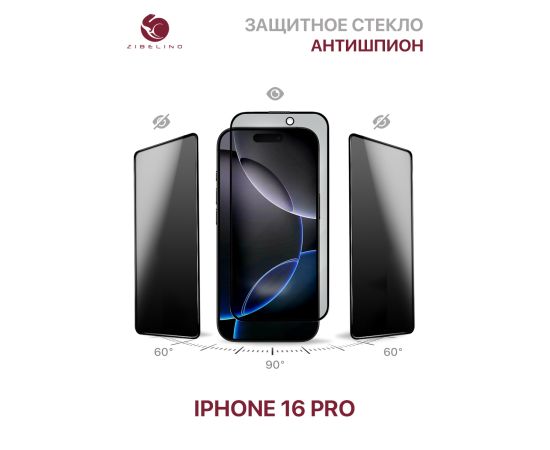 Защитное стекло антишпион для iPhone 16 Pro полноэкранное, с рамкой (Айфон 16 Про)