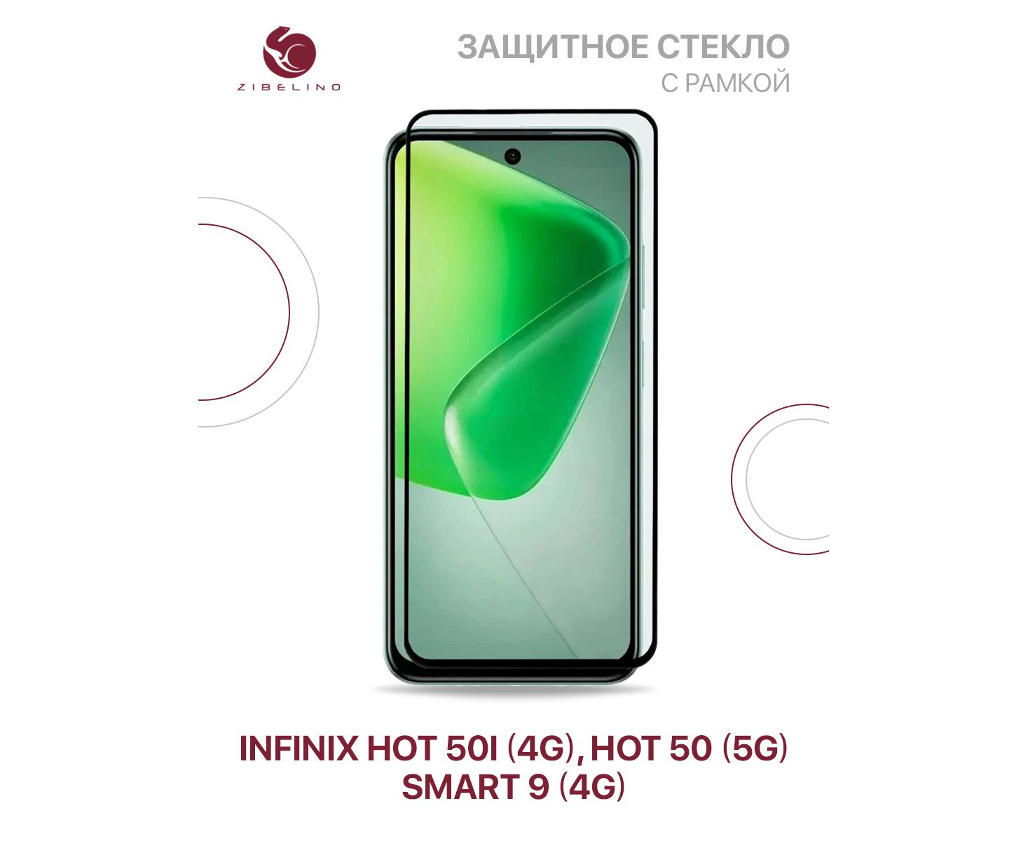 Защитное стекло для Infinix Hot 50i (4G), Hot 50 (5G), Infinix Smart 9 (4G) с черной рамкой (Инфиникс Хот 50, Инфиникс Хот 50i, Инфиникс Смарт 9)