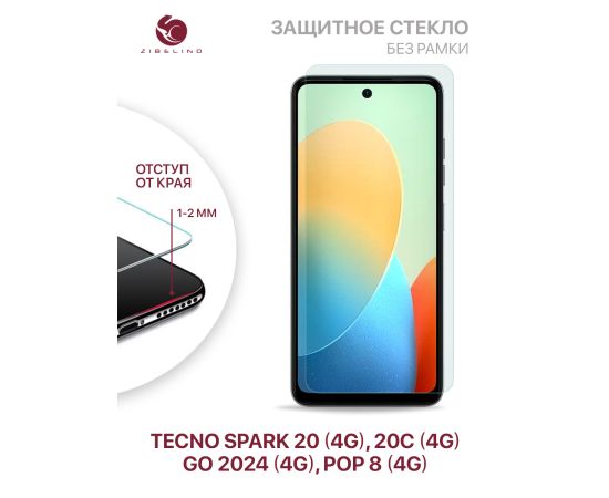 Защитное стекло для Tecno Spark Go 2024 (4G), Spark 20 (4G), Spark 20C (4G), Tecno Pop 8 (4G) без рамки, с отступом от краев (Текно Спарк Го 2024 Текно Спарк 20 20С Техно Поп 8)