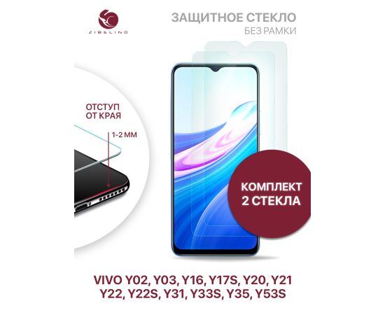 Защитное стекло для Vivo Y02, Y03, Y16, Y17s, Y20, Y21, Y22 Y22s, Y31 Y33s, Y35 Y53s без рамки с отступом от краев, Виво У02 У03 У16 У17s У20 У21 У22 У22s У31 У33s У35 У53s