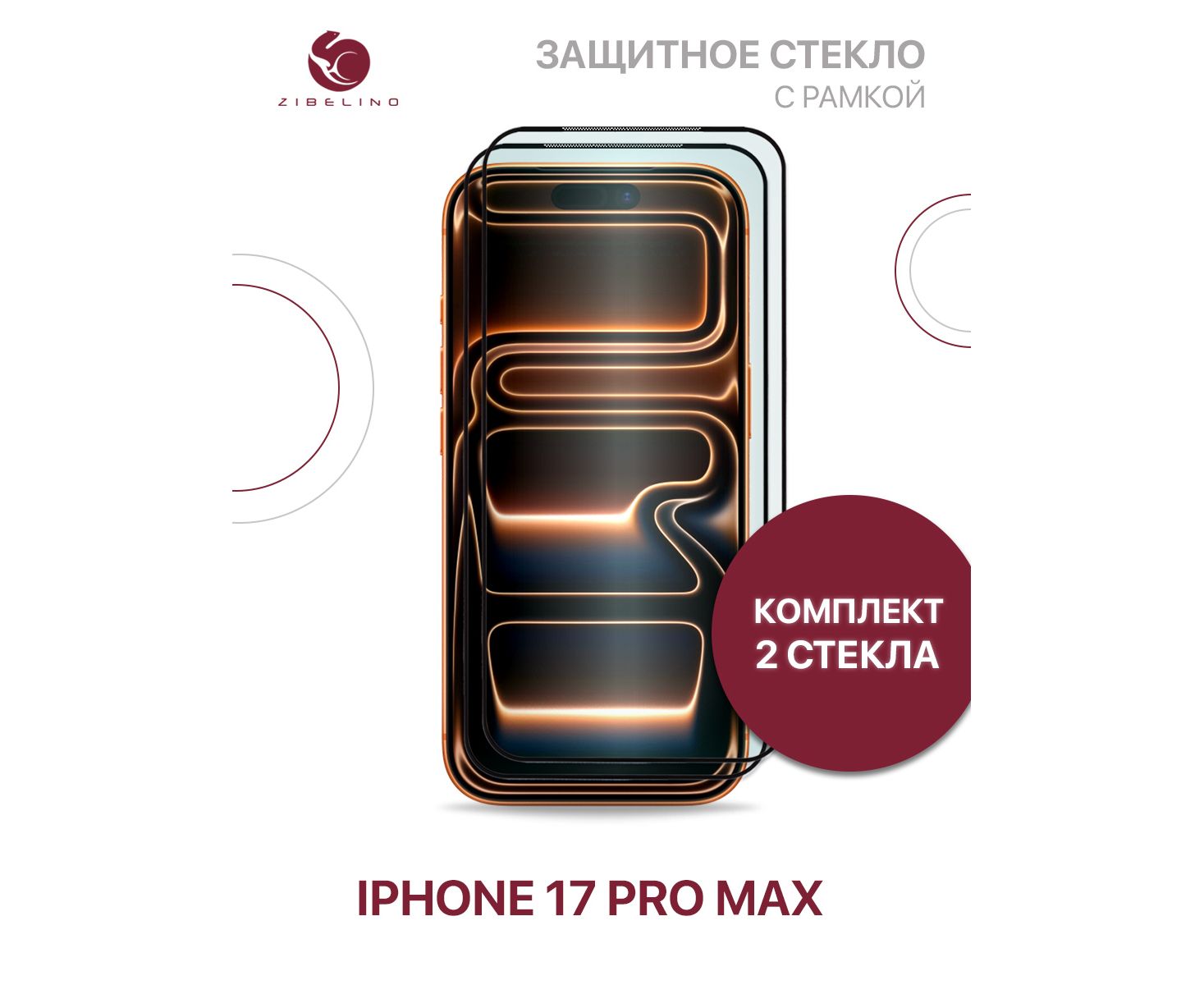 Защитное стекло (Комплект 2) для iPhone 17 Pro Max с рамкой (Айфон 17 Про Макс)