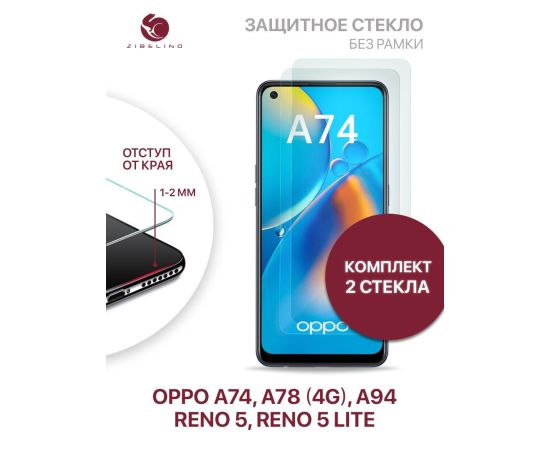 Защитное стекло (Комплект 2 шт) для Oppo A74, A78 4G, A94, Oppo Reno 5, Reno 5 Lite без рамки, с отступом от краев, Оппо А74 А78 А94 Рено 5 Лайт