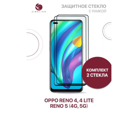 Защитное стекло (Комплект 2 шт) для Oppo Reno 4, Oppo Reno 4 Lite, Oppo Reno 5 с рамкой, Оппо Рено 4 Лайт Рено 5
