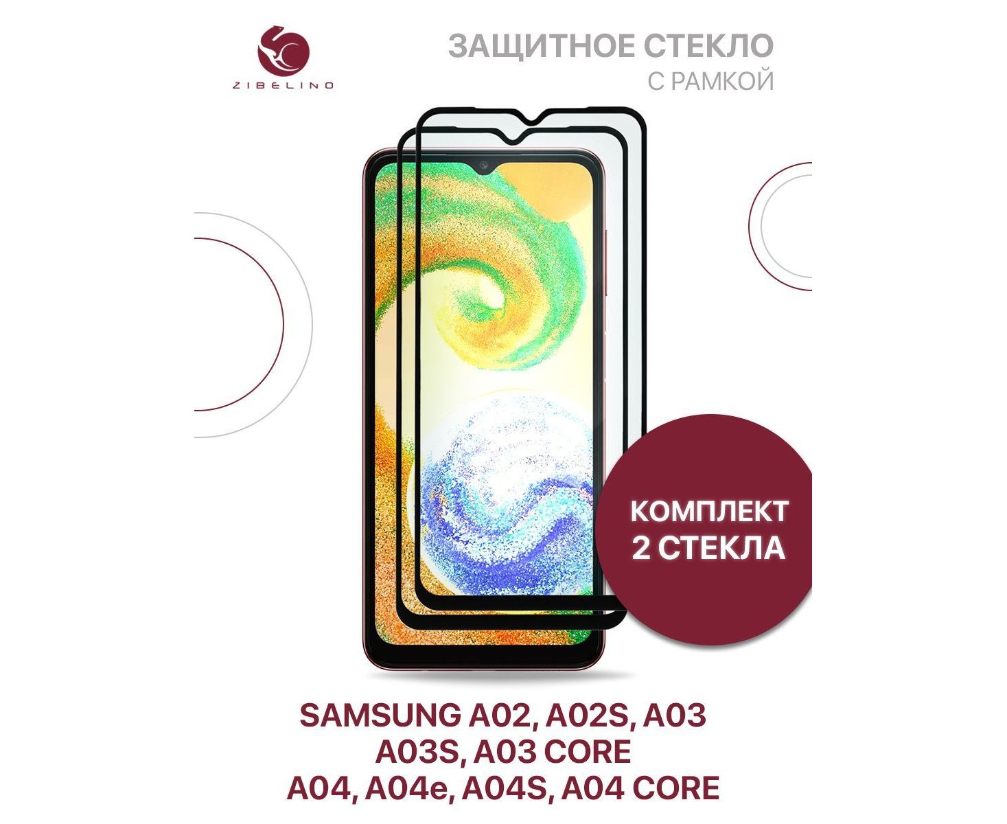 Защитное стекло (Комплект 2 шт) для Samsung Galaxy A02, A02s, A03, A03s, A03 Core, A04, A04e A04s A04 Core с рамкой, Самсунг Галакси А02 А02s А03 А03s А03 Кор А04 А04е А04s А04 Кор