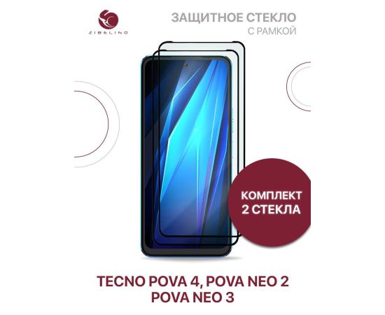 Защитное стекло (Комплект 2 шт) для Tecno Pova 4, Pova Neo 2, Neo 3 с рамкой, Текно Пова 4 Пова Нео 2 Нео 3