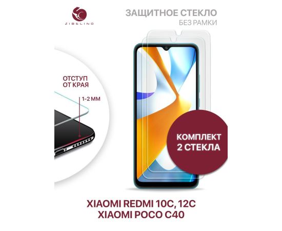 Защитное стекло (Комплект 2 шт) для Xiaomi Redmi 10C, 12C, Poco C40 без рамки, с отступом от краев (Сяоми Редми 10С 12С Поко С40)