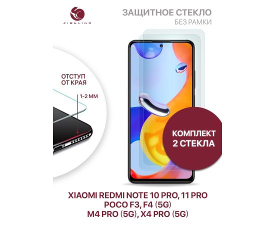 Защитное стекло (Комплект 2 шт) для Xiaomi Redmi Note 10 Pro, 11 Pro, Poco F3, F4 5G, M4 Pro 5G, X4 Pro 5G без рамки, с отступом от краев, Сяоми Редми Нот 10 Про 11 Про Поко Ф3 Ф4 М4 Про Х4 Про 5G