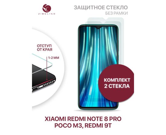 Защитное стекло (Комплект 2 шт) для Xiaomi Redmi Note 8 Pro, Redmi 9T, Poco M3 без рамки, с отступом от краев, Редми Нот 8 Про, Редми 9Т, Поко М3