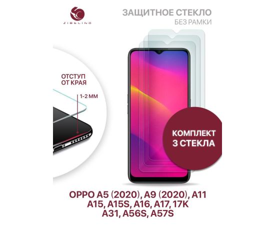 Защитное стекло (Комплект 3 шт) для Oppo A31, A5 2020, A9 2020, A11 A15 A15s, A16 A17, A17k Oppo A56s, A57s без рамки с отступом от краев, Оппо А31 А5 А9 А11 А15 А15s А16 А17 А17к А56s А57s
