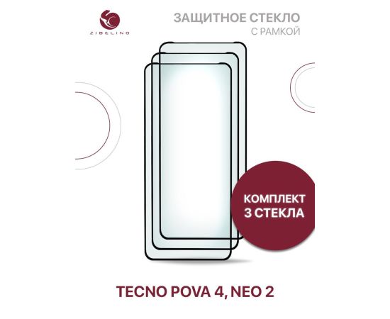 Защитное стекло (Комплект 3 шт) для Tecno Pova 4, Tecno Neo 2 с рамкой, Текно Пова 4 Нео 2