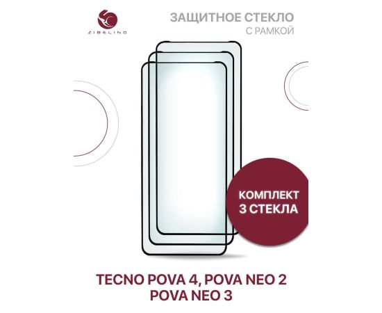 Защитное стекло (Комплект 3 шт) для Tecno Pova 4, Pova Neo 2, Neo 3 с рамкой, Текно Пова 4 Пова Нео 2 Нео 3