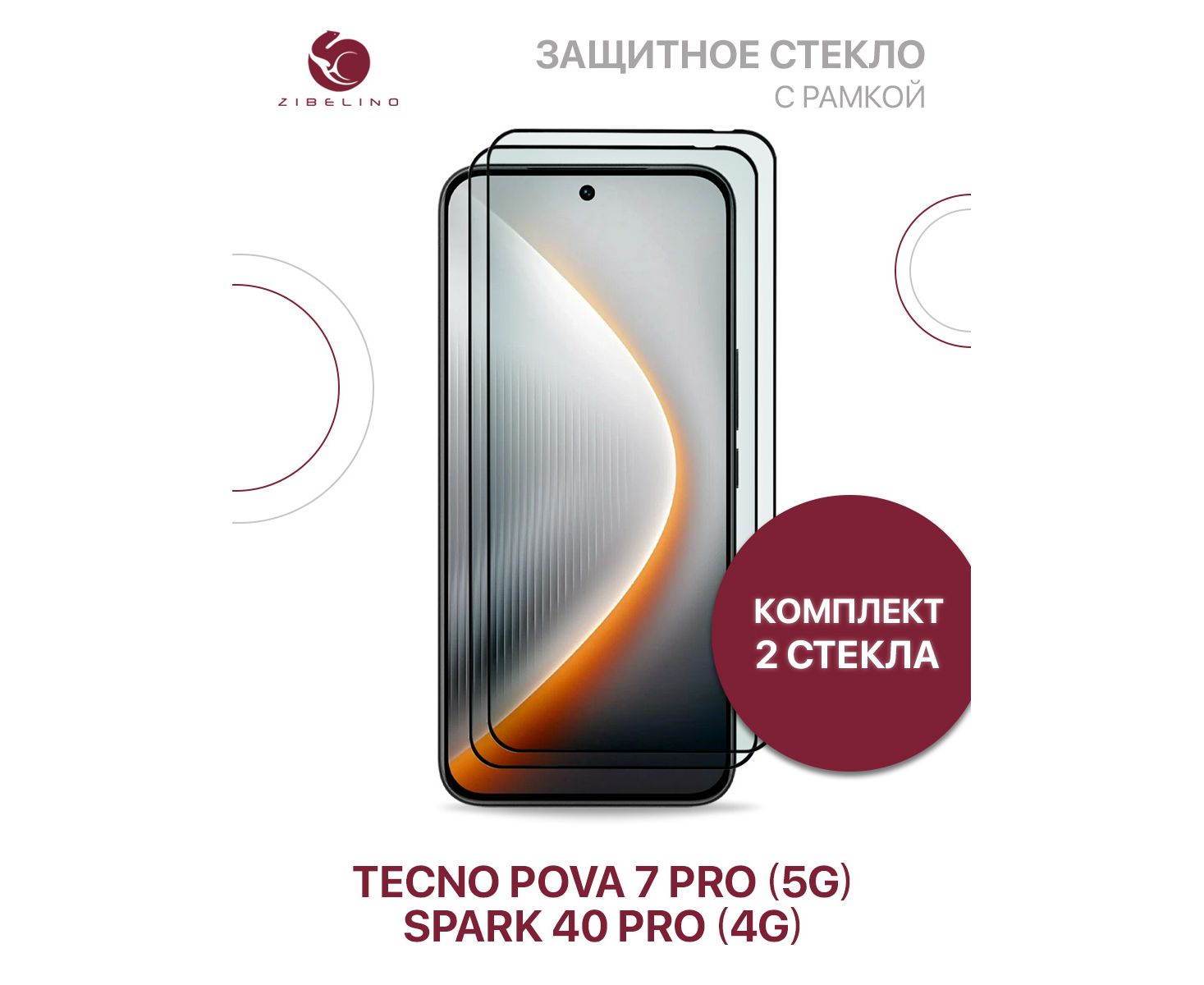 Защитное стекло (Комплект из 2 шт) для Tecno Pova 7 Pro (5G), Spark 40 Pro (4G) с рамкой (Техно Пова 7 Про, Спарк 40 Про)