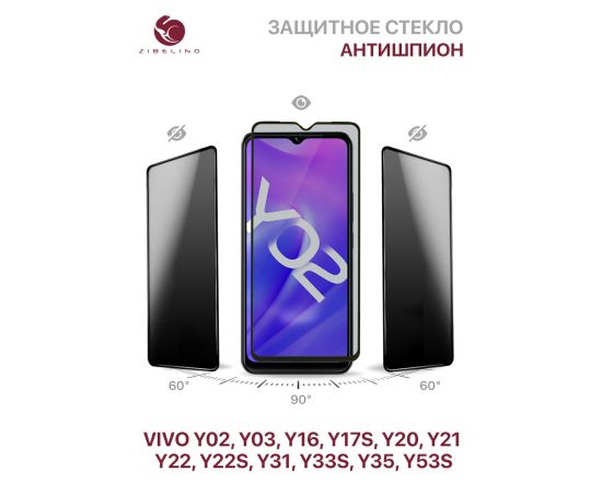 Защитное стекло Privacy антишпион для Vivo Y02, Y03, Y16, Y17s, Y20 Y21 Y22, Y22s, Y31 Y33s, Y35, Y53s полноэкранное с рамкой, Виво У02 У03 У16 У17s У20 У21 У22 У22s У31 У33s У35 У53s