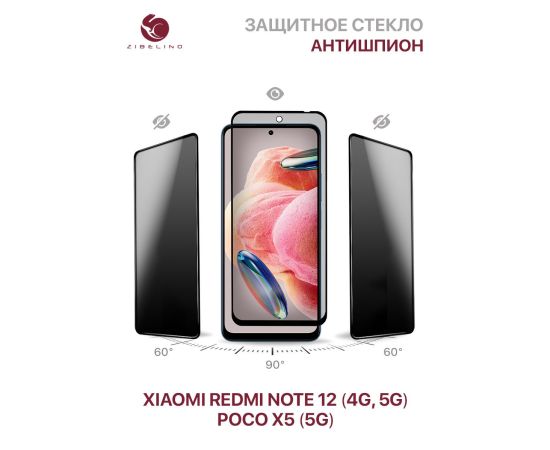 Защитное стекло Privacy антишпион для Xiaomi Redmi Note 12 (4g/5g), Poco X5 (5g) с рамкой (Ксиоми Редми Нот 12, Поко Х5 5G)
