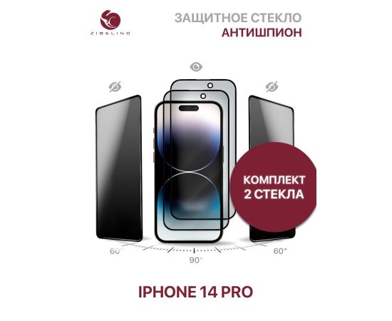 Защитное стекло Privacy антишпион (Комплект 2 шт) для Apple iPhone 14 Pro с рамкой (Айфон 14 Про)