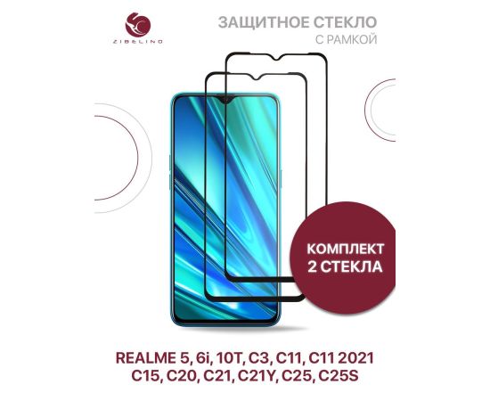 Защитное стекло Premium (Комплект 2 шт) для Realme 5, 6i, 10T, C3, С11, C11 2021, Realme C15 C20 С21 C21Y C25 C25S полноэкранное с рамкой, Реалми 5 6i 10Т С3 С11 2021 С15 С20 С21 С21У С25 С25S