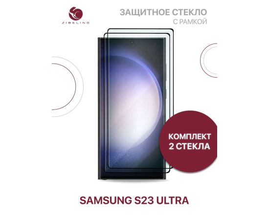 Защитное стекло Premium (Комплект 2 шт) для Samsung S23 Ultra с рамкой, с закругленными краями (Самсунг Галакси S23 Ультра)