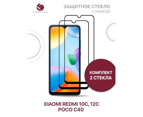 Защитное стекло (Комплект 2 шт) для Xiaomi Redmi 10C, 12C, Poco C40 с рамкой (Сяоми Редми 10С 12С Поко С40)