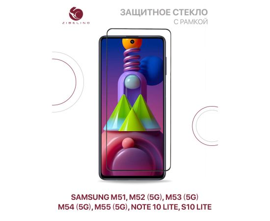 Защитное стекло для Samsung M51,M52 (5G), M53 (5G), M54 (5G), M55 (5G), Note 10 Lite, S10 Lite (6.7") с рамкой (Самсунг Галакси М51 М52 М53 М54 Нот 10 Лайт S10 Лайт)