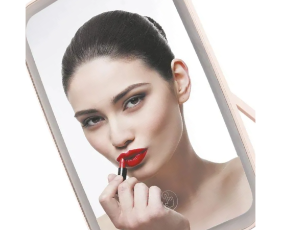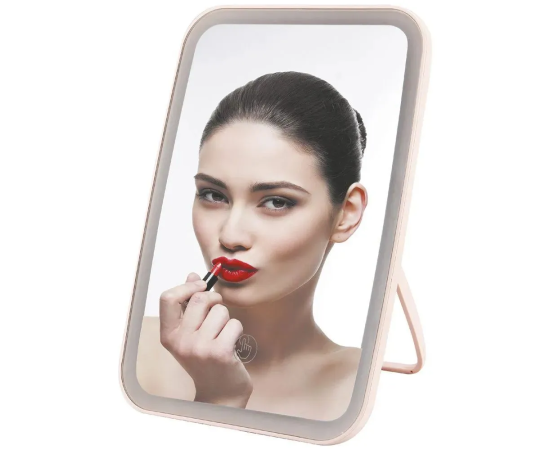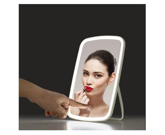 Зеркало с подсветкой для макияжа - уникальное приспособление, используемое для быстрого и удобного нанесения мейкапа или проведения косметических процедур. Размер: 23.8х16.8х2.5 см. У зеркала на подставке для макияжа по периметру стоят десятки светодиодов, что способствует равномерному естественному свечению, существенно облегчая нанесение макияжа. Интенсивность светодиодной подсветки для зеркала составляет более 500 люкс, что обеспечивает качественное освещение без ослепления глаз. А сенсорная кнопка на дисплее косметического зеркала с подсветкой даёт возможность легко менять яркость свечения. Дизайн LED зеркала с подсветкой для макияжа лаконичен. За счёт подвижной ножки можно менять угол расположения зеркала для макияжа с подсветкой и увеличением. Зеркало с подсветкой оснащено встроенной аккумуляторной батареей, что обеспечивает автономную работу. Можно использовать в ванной , на столе в гримерной.