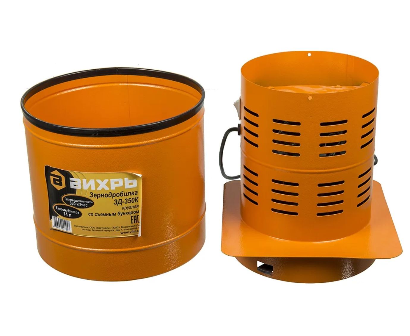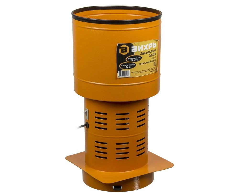 Зернодробилка Вихрь ЗД-350К - компактное устройство, используемое в домашнем хозяйстве с целью обеспечения кормами животных и птиц. Оборудование подходит для переработки всех видов сухого фуражного зерна, включая масленичные культуры и другой подобной сельскохозяйственной продукции. Сырье засыпается в специальный отсек объемом 14 л.