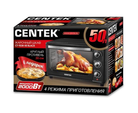 Электропечь Centek CT-1538-50 BLACK (черн) <50л> 2000Вт, таймер 90 мин, 4 режима, max 320°