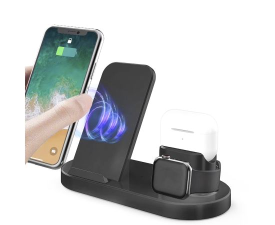 ЗУ Сетевое Беспроводное - WC04 (подставка) 3-in-1 (black) (118918)